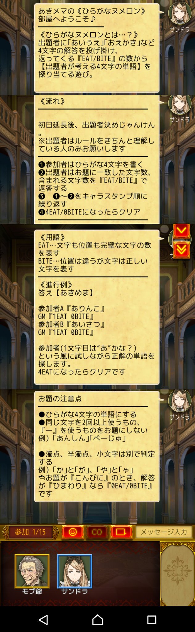 裏切りのあきメマ On Twitter 定期部屋 毎週月曜日の21 00より ひらがなヌメロン部屋 を開いています 参加側はひらがな4文字を言うだけなので簡単 ᴗ ルールは画像化して載せてるのでチェックしてみてね リプ欄に1ゲーム分のログ公開してます
