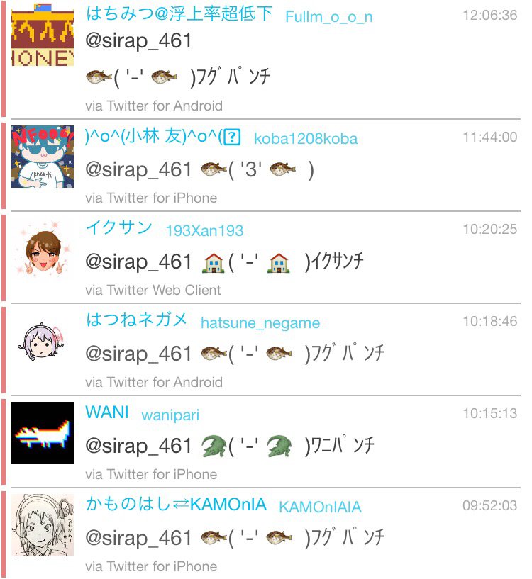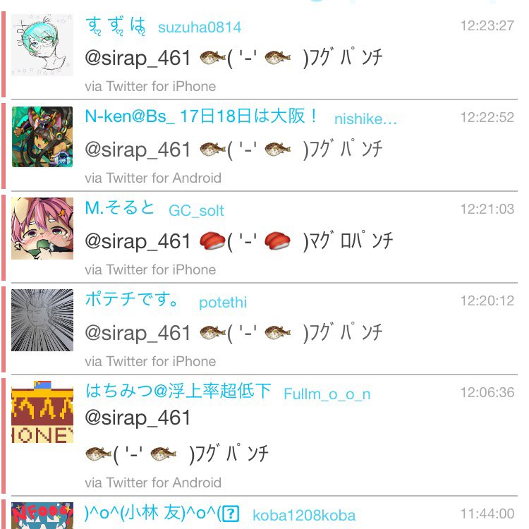 フグパンチとつぶやくと同じ構図の フグパンチが送られてくる Togetter