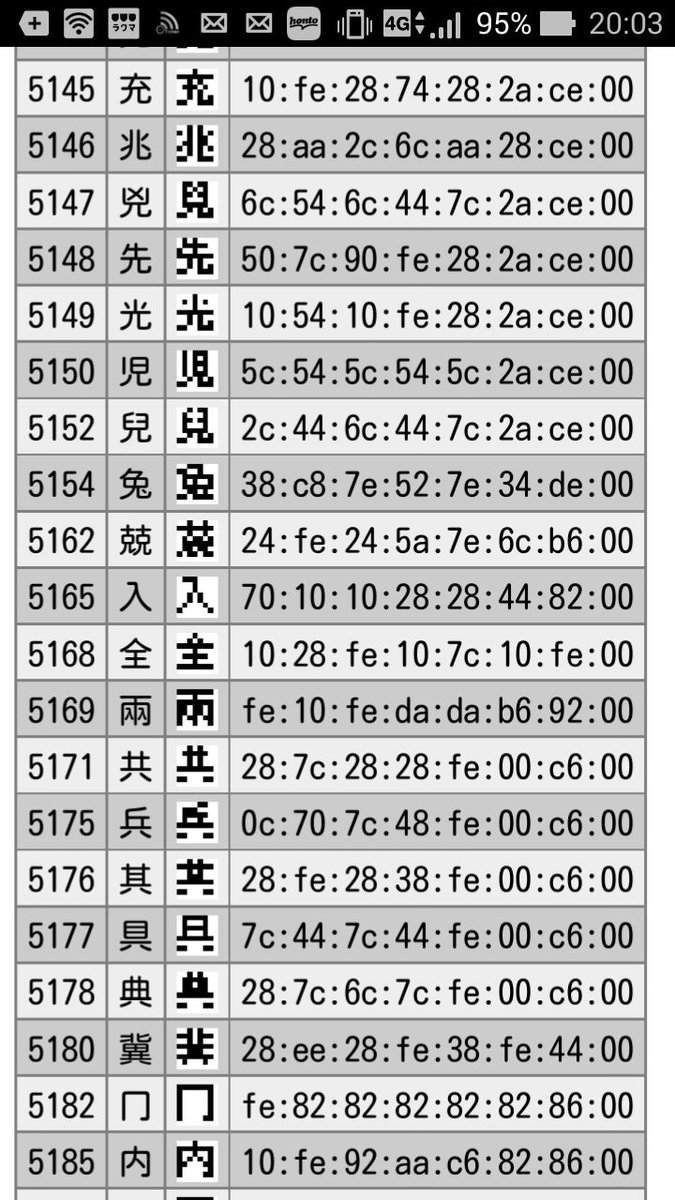 16 16のドットで漢字を表記するときのデータが公開されているサイ Yahoo 知恵袋