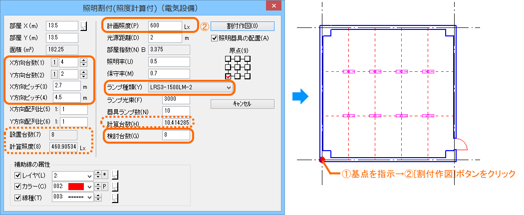 おすすめ機能 電気設備 その2 照明割付や電灯盤 文字記号の記入機能 Dra Cad