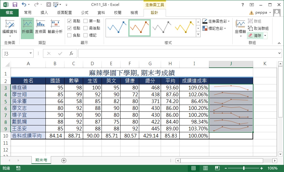 數位書香 Excel 主題式學習 單元11 製作成績圖表