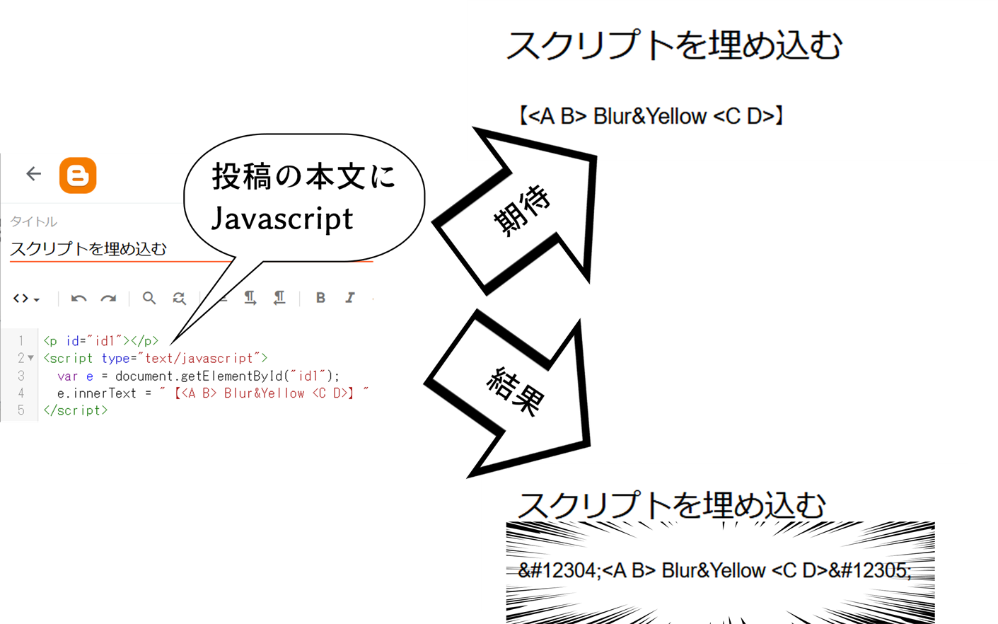 Kujipedia Bloggerに書いたjavascriptが文字化けする