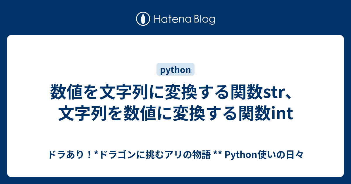 数値を文字列に変換する関数str 文字列を数値に変換する関数int ドラあり ドラゴンに挑むアリの物語 Python使いの日々