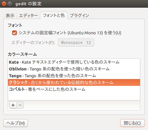 Ubuntu Gedit その22 フォントと色の設定を行う Kledgeb