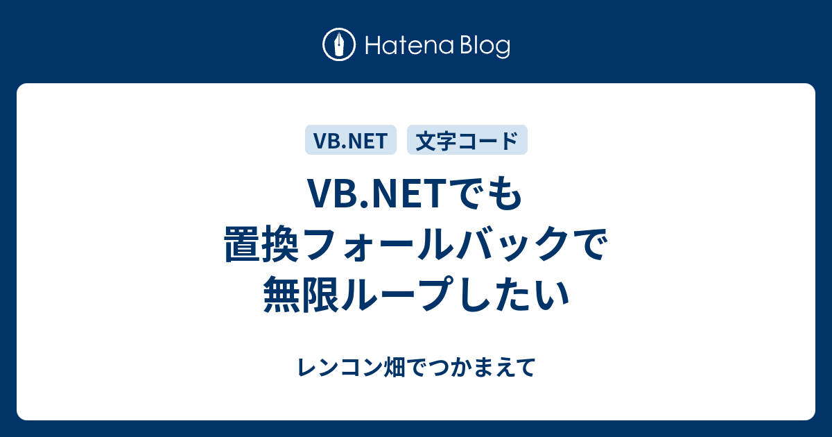 Vb Netでも置換フォールバックで無限ループしたい レンコン畑でつかまえて